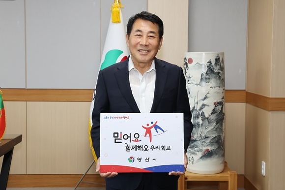 경남 양산시는 나동연 시장이 대구시교육청이 진행하는 학부모 인식 정립 캠페인 '믿어요 함께해요 우리학교' 챌린지에 동참했다고 5일 밝혔다.