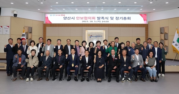 경남 양산시는 지난 5일 시청 대회의실에서 29개의 안보단체로 구성된 양산시 안보협의회를 발족했다. 이날 안보협의회에서는 이상환 재향군인회장을 초대 협의회장으로 선출했다. 나동연 시장은 “국가안보와 함께 시민안전까지 포괄하여 유기적으로 대처할 수 있는 안보협의회의 역할을 다해달라”고 당부했다.