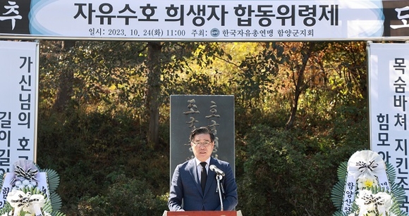 진병영 군수는 추도사를 통해 “오늘 합동위령제가 자유수호와 호국정신의 중요성을 되새기는 계기가 되는 뜻깊은 자리가 되기를 바란다”며, 자유와 평화를 위해 목숨을 바치신 선열들과 한국자유총연맹 관계자들에게 감사를 표했다.