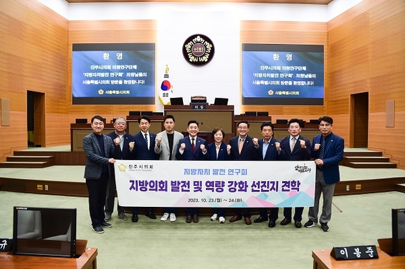 진주시의회 의원연구단체 지방자치 발전 연구회가 지난 23일부터 이틀간 서울시의회와 경기 하남시의회를 잇달아 방문해 지방자치 발전 방안을 모색했다.