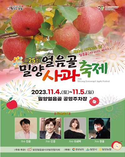 경남 밀양시는 오는 11월 4일과 5일 영남알프스 절정의 단풍과 수려한 풍경으로 많은 관광객들이 찾고 있는 산내면 얼음골의 공영주차장에서 제25회 밀양얼음골사과축제가 열린다고 26일 밝혔다.