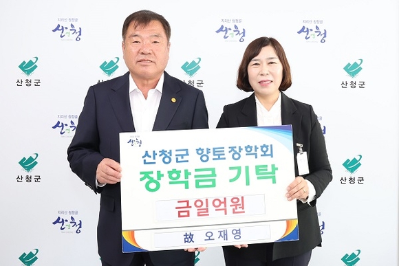 30년간 소방공무원으로 나라를 위해 헌신한 고(故) 오재영씨의 퇴직연금 1억원이 산청군향토장학회에 전달돼 지역사회의 귀감이 되고 있다.