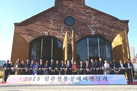 경남 진주시는 31일 진주 철도문화공원(옛 진주역 일원)에서 열리는 '2023 진주전통공예비엔날레' 개막식을 가졌다.