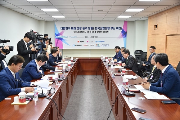 부산시는 3일 오전 국회 의원회관 제1간담회실에서 '산업은행 부산 이전 민·관·정 협력 전담팀(TF) 3차 회의'를 가졌다.