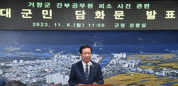 이어 “거창군 공무원과 관련된 일이라면 좋은 일이든 나쁜 일이든 800여 공무원을 지휘·감독하는 군수의 책임이다. 모두 저의 불찰이다. 제가 대신하여 사죄드린다”고 말했다.