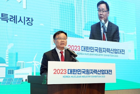 경남 창원시는 '2023 대한민국원자력산업대전'이 8일 CECO에서 두산에너빌리티와 한국수력원자력 등 국내 원자력 대기업을 포함해 40여 개 원전기업이 참가한 가운데 막을 올렸다고 밝혔다.
