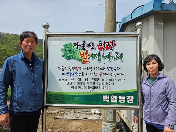 의령농협 조합원인 윤해용(63)·황미자(63) 부부(백암농장)는 의령에서 밭미나리를 재배하는 40년차 프로 농업인으로 '신기술 도입 실천이 농업 경쟁력 향상'이라는 일념을 가지고, 시설 밭미나리 재배기술을 도입·연구해 의령의 대표 농산물로 성장하는데 큰 기여를 한 선도 농업인이다.