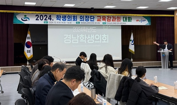 경남도교육청은 4일 오후 교육청 2층 강당에서 18개 시군 학생의회 의장단 60여 명과 함께 '2024년 학생의회 의장단 교육감과의 대화' 자리를 열었다.