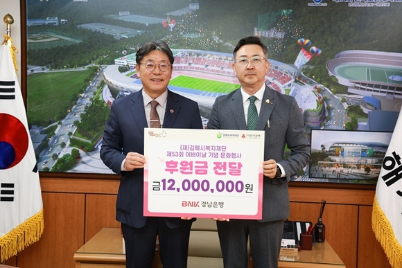 경남 김해시는 28일 BNK경남은행이 어버이날을 앞두고 지역 어르신들께 감사의 마음을 전하고자 김해시복지재단에 1200만원의 후원금을 기탁했다고 밝혔다.