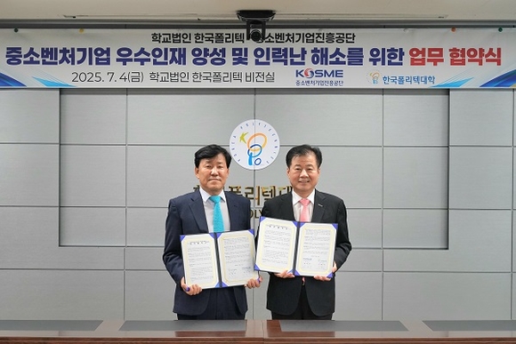중소벤처기업진흥공단이 4일 한국폴리텍대학과 중소벤처기업 우수인재 양성 및 인력난 해소를 위한 업무협약을 체결했다고 밝혔다.