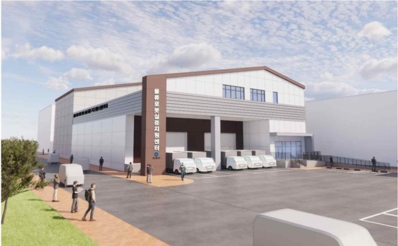 물류로봇 실증지원센터는 물류영역 서비스로봇 공통플랫폼 구축사업의 핵심부분으로 지하 1층, 지상 2층, 연면적 2431㎡ 규모로 건립된다. 지하 1층에는 기계실과 전기실, 지상 1층에는 물류창고와 관리실, 지상 2층에는 서버실, 관제실, 사무실 등이 위치한다. 총 공사비는 88억원이며, 내년 2월 준공을 목표로 이달 말 착공한다.