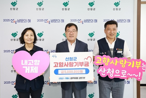 산청군과 거제시의 공무직노동조합 간 고향사랑기부제 상호기부는 이번이 처음이다.