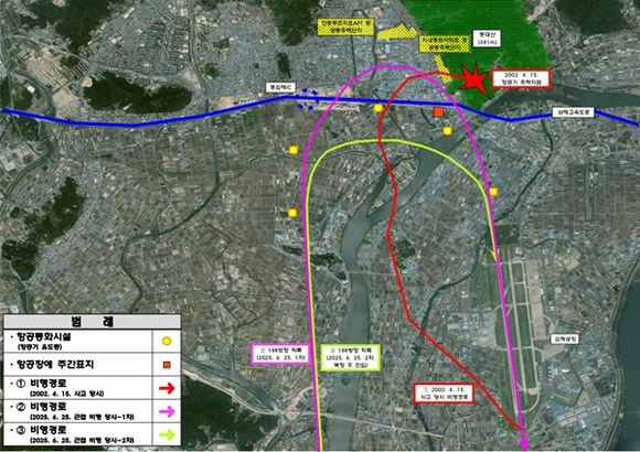 이어 “그간 우리 시는 소음 피해와 항공 재난 예방을 위해 수차례 활주로 연장과 항로 변경 등을 건의했으나 공군에서는 개선 효과 미비와 군사작전구역 항로별 운항 고도 제한으로 어렵다고 한다”며 “이래서 안되고 저래서 안된다고 하면 우리 시민들은 계속 항공기 추락 사고의 위험을 안고 살아야 하느냐”고 반문했다.