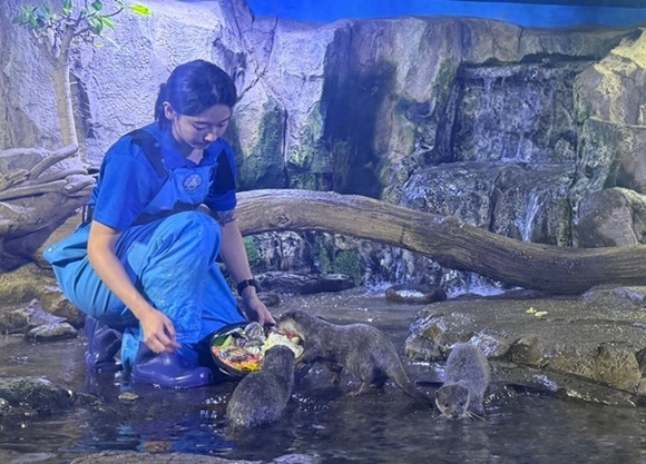 부산아쿠아리움이 초복을 맞아 수달 네 마리에게 뚝배기에 담은 특별 보양식을 제공하며 관람객들에게 색다른 볼거리를 선사했다.