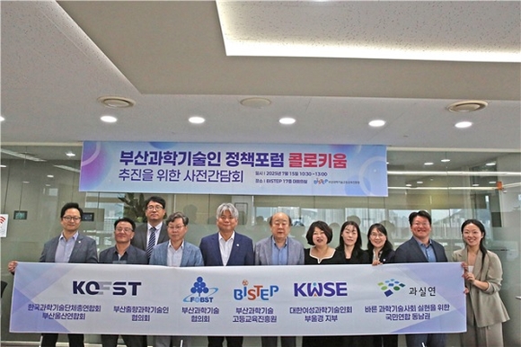 부산과학기술고등교육진흥원(BISTEP)이 지난 15일 BISTEP 대회의실에서 부산의 과학기술과 산업의 발전을 위한 과학기술인의 연대와 협력을 주제로 ‘부산과학기술인 정책포럼(부산과학기술인 콜로키움)’ 런칭을 위한 사전간담회를 개최했다.