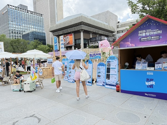 부산관광공사가 ‘2025 서울썸머비치’ 축제에 참가해 다음 달 8일까지 서울 광화문 광장에서 ‘VISIT BUSAN(비짓부산)’ 팝업 이벤트를 운영한다고 밝혔다.