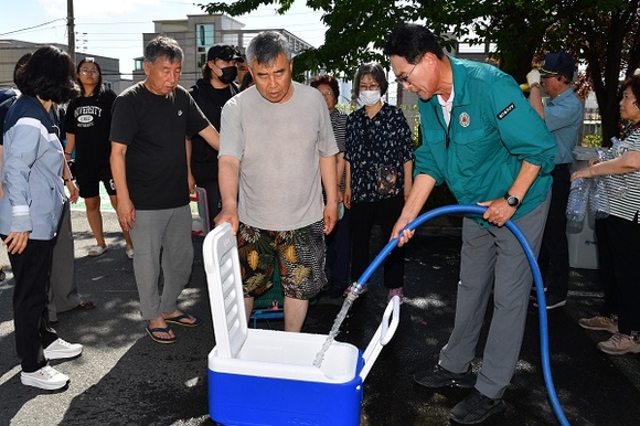 이순걸 군수는 “갑작스런 폭우로 인한 단수 사태로 피해를 겪으신 주민 여러분께 정말 송구하다는 말씀을 올린다”며 “현재 가용한 모든 자원과 행정력을 총동원하고 있으나 미흡한 부분이 있어 죄송스럽게 생각한다. 신속하게 물 공급이 재개될 수 있도록 총력을 다하겠다”고 밝혔다.