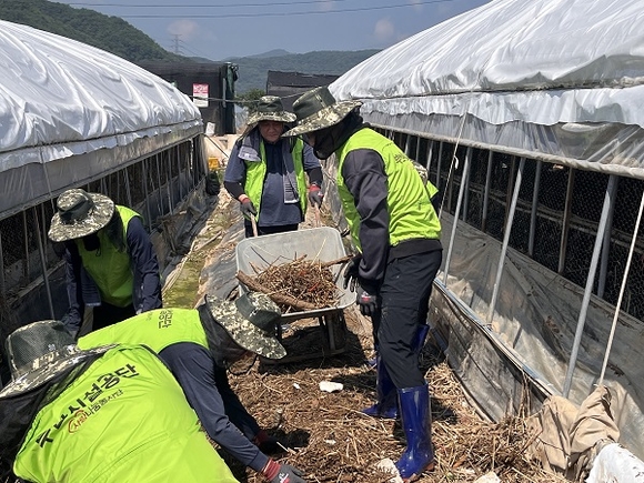 노사가 함께한 공단 봉사단은 침수된 농경지의 토사와 폐기물 정리, 쓰레기 수거 등 현장 복구 작업에 나섰으며, 전기·시설분야 전문 기술인력도 함께 투입돼 전기안전 점검 등 실질적인 기술봉사도 병행했다.