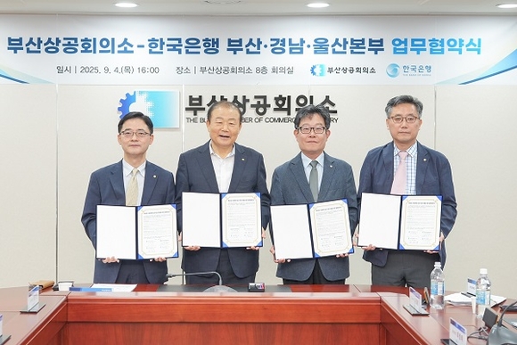 부산상의는 4일 한국은행 부산·경남·울산본부와 사업재편 승인기업 지원 확대를 위한 업무협약(MOU)을 체결했다고 밝혔다. 이번 협약으로 동남권 사업재편 승인기업은 자금조달 부담을 완화할 수 있는 맞춤형 금융 지원을 받게 된다.