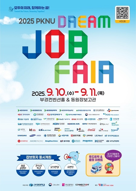 국립부경대학교는 하반기 본격적인 취업 시즌을 맞아 오는 10일과 11일 지역 청년들을 대상으로 대규모 취업박람회 ‘PKNU 드림 잡 페어(DREAM JOB FAIR)’를 개최한다고 8일 밝혔다.