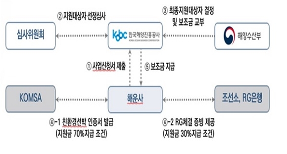 선박별 보조금은 한국해양교통안전공단(KOMSA)이 인증한 친환경선박 등급에 따라 선가의 최대 10%까지 지원받을 수 있다. 이에 KOMSA가 발급한 친환경선박 예비인증서를 신청서와 함께 제출해야 하므로, 신청을 희망하는 선사는 인증서 발급 소요기간을 감안해 준비해야 한다.