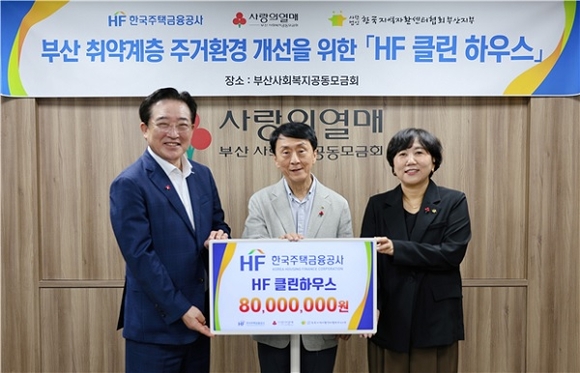 한국주택금융공사(HF)가 ‘HF 클린하우스’ 활동을 위한 기부금을 부산사회복지공동모금회에 전달했다고 9일 밝혔다.