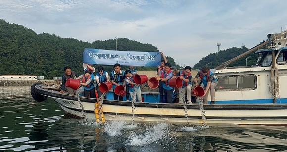 국토안전관리원은 지난 8일 경남 통영시 궁항어촌체험마을에서 해양 생태계 보전과 지역 상생을 위한 유어(어린 물고기) 방류 및 사회공헌활동을 실시했다고 10일 밝혔다.
