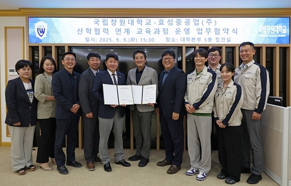 국립창원대학교와 효성중공업(주)은 지난 9일 국립창원대 대학본부에서 산학협력 연계 교육과정 ‘효성중공업 Insight Academy’ 운영을 위한 업무협약(MOU)을 체결했다고 10일 밝혔다.