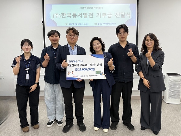 한국동서발전은 10일 울산남구가족센터에서 지역사회 취약계층 자녀를 위한 ‘2025년 취약계층 자녀 공부방 운영 및 지원’ 업무협약을 체결했다고 밝혔다.