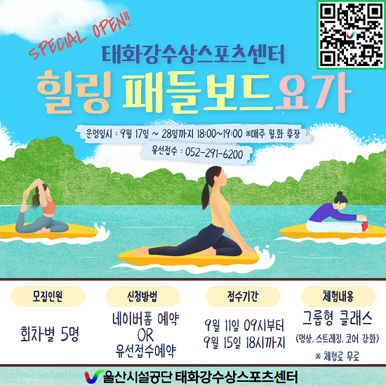 공단 관계자는 “맑은 태화강 위에서 즐기는 패들보드 요가는 시민들에게 색다른 경험과 힐링을 제공할 것”이라며 “많은 시민들이 참여해 건강한 여가문화를 함께 만들어가길 바란다”고 말했다.