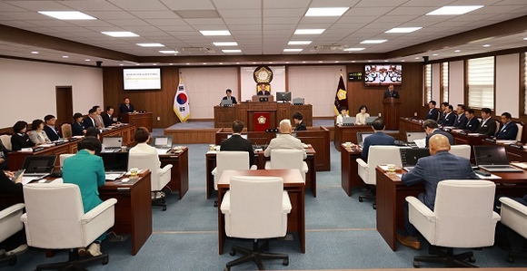정봉훈 의장은 개회사를 통해 “제2회 추가경정예산안을 비롯한 의안 심사에 있어 군민의 복리 증진을 최우선으로 해 주시기 바란다”며 “다가오는 추석명절에는 극한호우로 피해를 입은 군민들께서도 따뜻하고 풍성한 명절을 보낼수 있도록 세심히 살펴달라”고 당부했다.