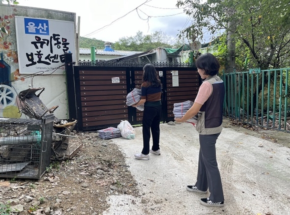 울산시설공단은 지난 12일 울산 울주군에 위치한 유기동물 보호센터를 방문해 직원들이 자발적으로 모은 신문지와 수건을 기부하는 따뜻한 나눔을 실천했다고 15일 밝혔다.