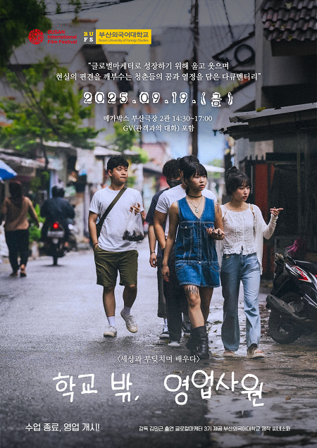 부산외국어대학교는 영화 ‘학교 밖, 영업사원’이 제30회 부산국제영화제에 출품되면서 오는 19일 오후 2시 30분 메가박스 부산극장 2관에서 상영회를 개최한다고 16일 밝혔다.