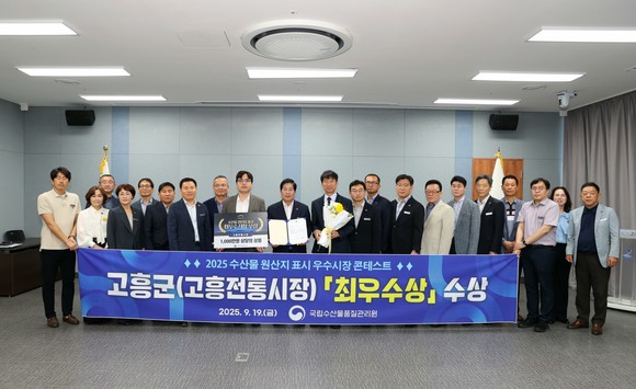고흥군(군수 공영민)은 고흥전통시장이 ‘2025 수산물 원산지 표시 우수시장 콘테스트’에서 전국 최고의 시장을 입증하는 최우수상을 수상했다고 22일 밝혔다.