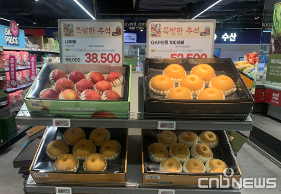 실제로 지난 23일 찾은 서울 서대문구 이마트 신촌점 매대는 대부분 5만 원 미만의 과일 선물 세트가 차지했다.