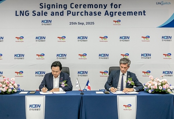 한국남동발전은 25일 경남 진주 본사에서 프랑스 글로벌 에너지기업인 토탈에너지스(TotalEnergies)와 LNG(액화천연가스) 매매계약 서명식을 진행했다고 밝혔다.