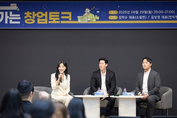 무대에는 김학수 ㈜소셜빈 대표, 김상경 ㈜천지개벽 대표가 강연자로 나섰다. 두 연사는 창업 계기, 초기 자금 조달, 팀 빌딩, 제품·서비스 개발, 실패 극복, 시장 진입 전략과 사업화 과정 등 실전에서 얻은 경험과 노하우를 풀어냈다. 특히 “아이디어를 빠르게 검증하고 반복 실험으로 시장에 맞추는 것이 핵심”이라는 조언은 학생들의 큰 공감을 이끌었다.