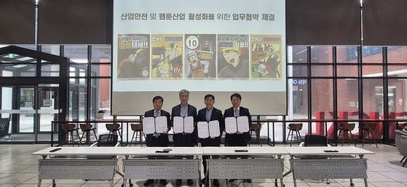 한국산업단지공단 경남지역본부는 2일 경남웹툰캠퍼스에서 경남문화예술진흥원, 창원문성대학교, (사)창원국가산업단지경영자협의회와 산업안전 웹툰 협약을 체결했다고 밝혔다.