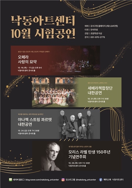 마지막 무대는 28일 오후 7시 30분에 열리는 ‘모리스 라벨 탄생 150주년 기념연주회’로, 프랑스를 대표하는 작곡가 라벨의 음악 세계를 조명한다. 세기를 넘어 이어지는 낭만의 선율로 10월 시험공연의 대미를 장식할 것으로 보인다.