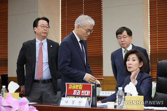 그러나 국민의힘 측은 민주당 의원들이 현장검증을 하겠다며 국감장을 벗어나자 국감 파행을 선언하고 국회로 발길을 돌리면서 ‘사법부 겁박’, ‘대법원 불법 점령’, ‘대법원 압수수색’, ‘의회 독재·입법 쿠데타’ 등 격한 표현을 쏟아졌다.
