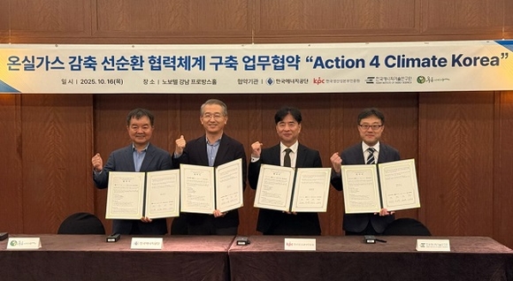 한국에너지공단은 16일 서울 강남 노보텔 앰배서더 호텔에서 푸른아시아, 한국생산성본부 인증원, 한국에너지기술연구원과 함께 '기후행동을 위한 4개 기관 4개 중점 분야 협력 협약(Action 4 Climate Korea)'을 체결했다고 밝혔다.