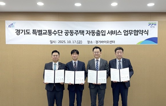 경기교통공사는 17일, 경기도, 대한주택관리사협회 경기도회, 전국아파트입주자대표회의연합회 경기도지부와 함께 ‘장애인콜택시 아파트 자동출입 서비스’ 도입을 위한 업무협약을 체결했다.