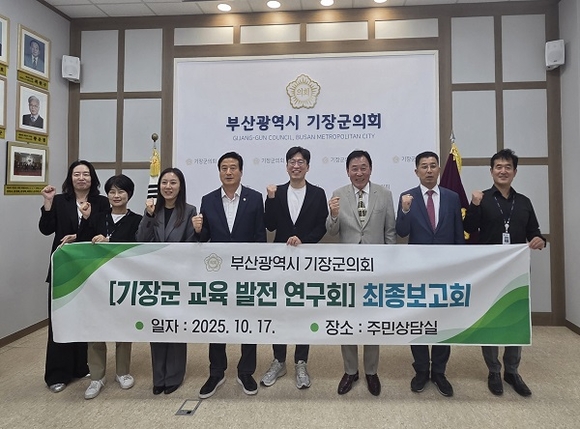 부산 기장군의회가 지난 17일 의원연구단체인 ‘기장군 교육 발전 연구회’ 최종 보고회를 주민상담실에서 개최했다고 밝혔다.
