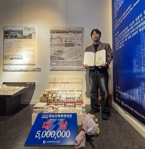 경남대학교는 건축학부 김세중 학생이 지난 15일 국립창원대학교 박물관 2층 조현욱아트홀에서 열린 ‘2025 제35회 경남건축문화대전’에서 대상을 수상했다고 24일 밝혔다.