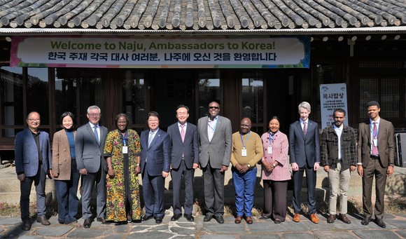 나주시는 지난 24일 ‘2025 국제농업박람회’ 개막행사(10월 23일, 전라남도농업기술원)에 참석한 에티오피아, 콩고, 케냐, 탄자니아, 아일랜드 등 5개국 주한대사와 사절단을 대상으로 나주의 대표 산업단지와 관광 명소를 둘러보는 초청 홍보 여행(팸투어)을 진행했다고 27일 밝혔다.