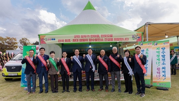 행사장 내에 마련된 양수발전소 유치 홍보부스에서는 오도산 양수발전소 유치의 필요성과 사업 추진 내용 등을 알리며 군민 공감대 확산과 적극적인 참여를 유도했다. 이를 통해 주민 수용성을 확보하고, 양수발전소 유치를 통해 인구감소 및 지역경제 저성장에 대응하고자 하는 군민의 의지를 재확인하는 자리가 됐다.
