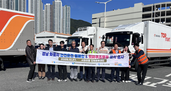 이날 캠페인은 탑마트 김해물류센터에서 새벽·야간배송이 많은 화물자동차 대상 안전운전 인식을 제고하고자 진행됐으며, 후부반사지 부착과 함께 최고속도, 휴게시간 준수 등 교통안전수칙을 배포했다.
