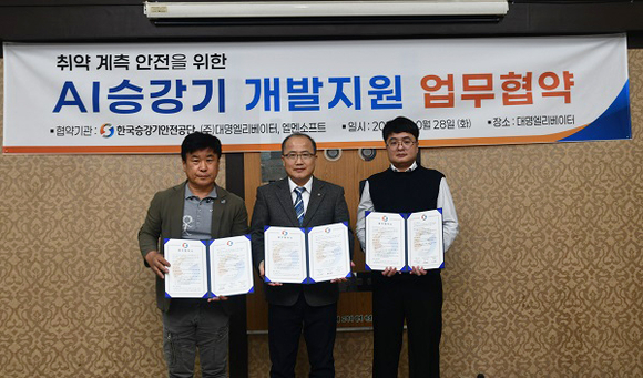 한국승강기안전공단은 28일 엘맨소프트, ㈜대명엘리베이터와 ‘AI 적용 승강기 안전모듈 개발 및 플랫폼 연계 협력 업무협약(MOU)’을 체결했다고 밝혔다.