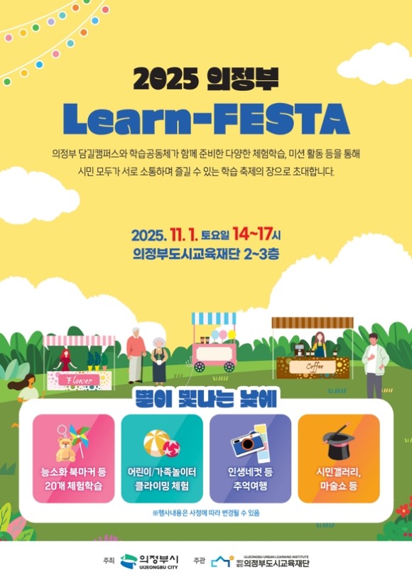‘2025 의정부 Learn-FESTA’는 11월 1일 의정부도시교육재단 일대에서 진행되며, 자세한 내용은 재단 홈페이지 공지사항을 통해 확인할 수 있다.
