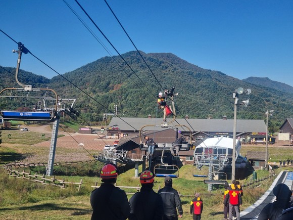 이번 리프트 긴급 구조 훈련은 지난 28일 오후 1시 설천베이스 에코리프트에서 무주소방서 구조대, 구천동 119 안전센터와 함께 진행됐다. 리조트 관계자 25명과 무주소방서 구조대원 15명 등 총 40여 명이 참여해 실전을 방불케 하는 강도 높은 합동 훈련을 펼쳤다.